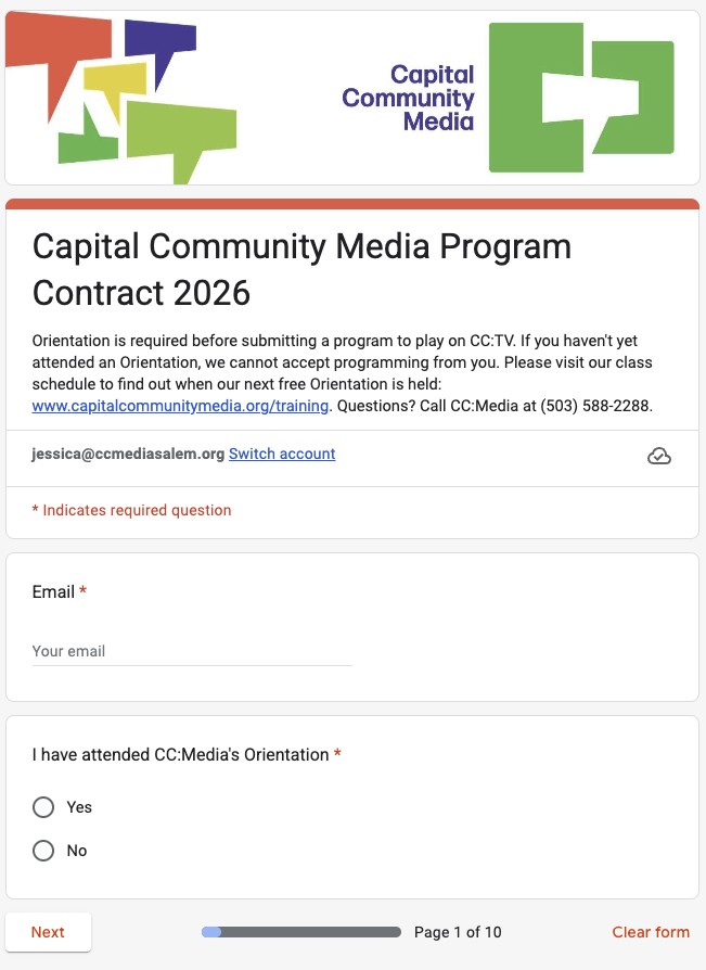 Click HERE to access CC:Media’s dropbox. Note: Remote program submission is available only to individuals who have completed Orientation and provided proof of Salem residency. For more information about Orientation, email hello@capitalcommunitymedia.org or call (503) 588-2288.